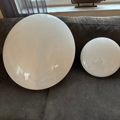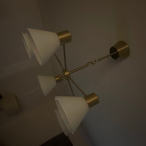 Vi har nyligen bytt ut taklamporna. Alla dessa har eluttag och är lättmonterade om man har en krok i taket. Glödlampor ingår. De kan säljas separat men helst alla tre.