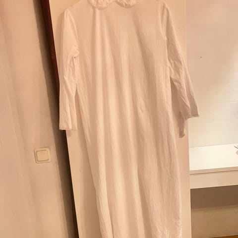 Lucialinne / klänning med rund krage & spets. Sprund med knapp baktill i nacken.