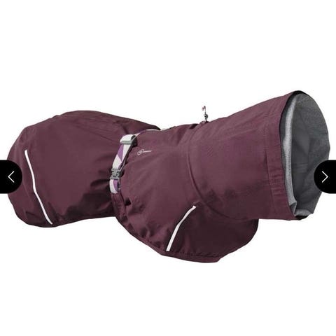 Hurtta Outdoor hundjacka med två färger: grå och grön. Jackan är designad för att ge skydd och komfort till hundar under utomhusaktiviteter.