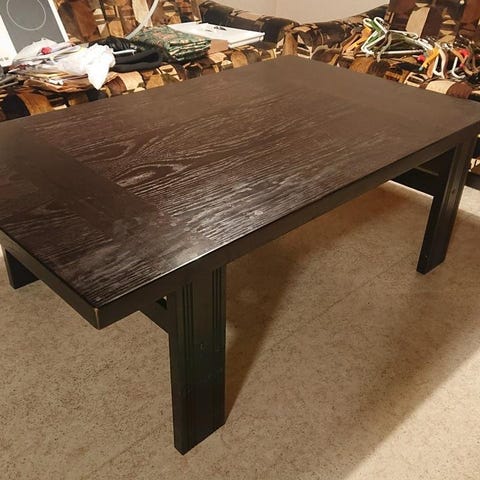 Använt skick-fina ändå eftersom de är gamla. Svarvade bordsben. 1 helt set om 3 - går att skjuta in så att det blir ett bord!