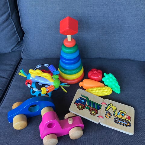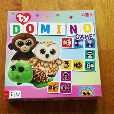 Säljer ett domino-set i plast. Innehåller många färgglada dominobrickor samt en röd ramp/trappor som gör effekten roligare när man bygger banor. Allt fungerar fint och är perfekt för barn som gillar att bygga och testa dominoeffekter.