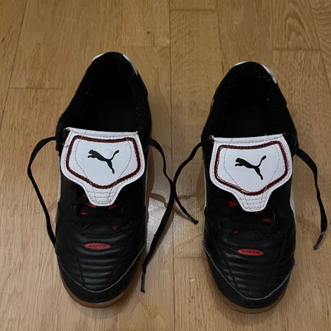 Puma One 20.1 fotbollsskor storlek 35 i svart färg. Skorna har fast plös och snörning och är tillverkade med material som ger bra passform och komfort. Passar för inomhusbruk.
