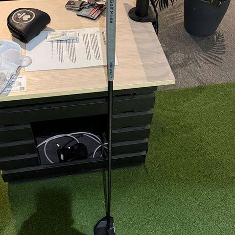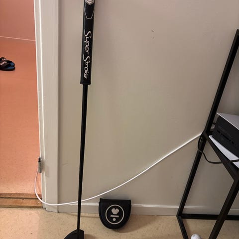 Putter är i nyskick, endast provad ett fåtal gånger på en inomhus övningsgreen. Notera det lilla hålet på greppet på sista bilden som orsakats av en peg i bagen.