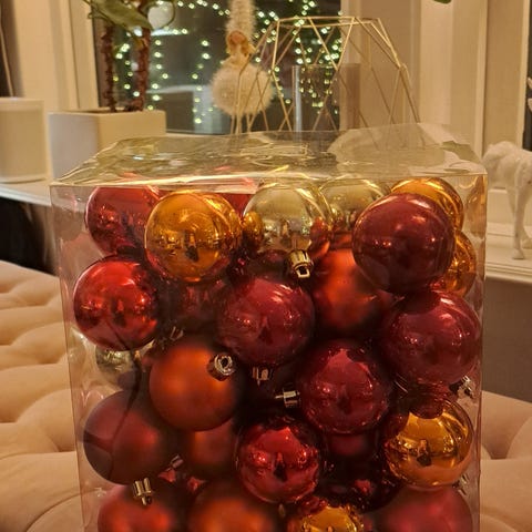 IKEA Jul julgransdekorationer i isblå och silver färg, inklusive kulor och andra prydnader.