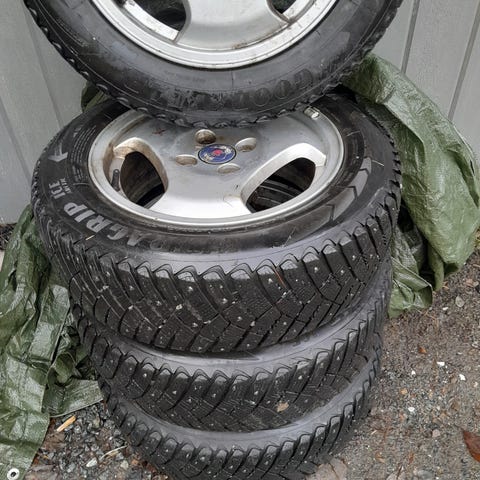 Dubbdäck med fälgar i storlek 195/65 R15 95T som bl.a. passar på Saab 9.3. Har endast använts en vinter.