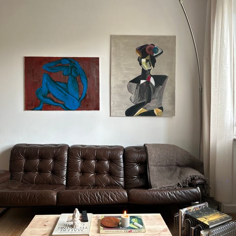 Vintage ”EMILE SOUPLY” Lädersoffa, Frankrike, sent 20-tal