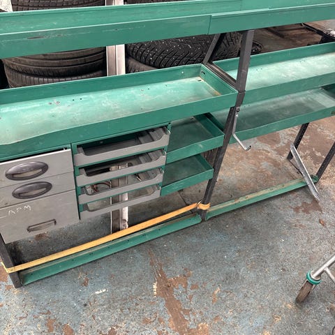 2 st BISLEY Förvaringsvagnar med 4 lådor i grå metall
