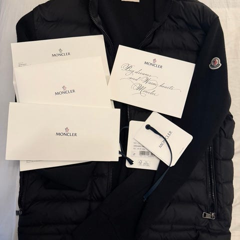 Det finns inga skador/hål eller lukter. Den är i ny skick med tags & självklart äkta. Det finns kvitto och orderbekräftelse inköpt hos Moncler.com