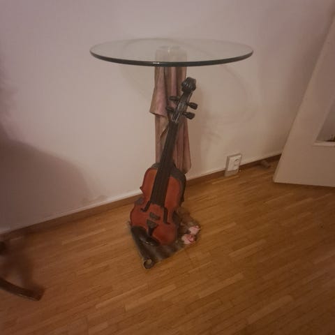 Vintagefynd! Ett fint gammalt blomsterbord i rotting från 1900-talets mitt. Oval form med upptill skiva av glas. Mycket fint vintageskick.