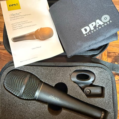 Audix OM3 Dynamisk sångmikrofon med mikrofonklämma och skyddspåse. Mikrofonen är svart och avsedd för röstinspelning och liveframträdanden.