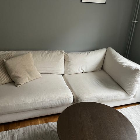 Modellen heter ”Sky” och är köpt 2021. Soffan har större del av tiden stått magasinerad pga separation och flytt.