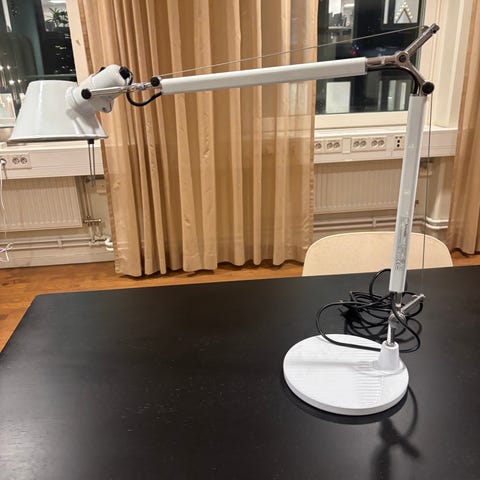 Stilren kontorslampa i gott skick. Ger bra arbetsbelysning och passar perfekt för skrivbord eller hemmakontor. Fungerar som den ska.