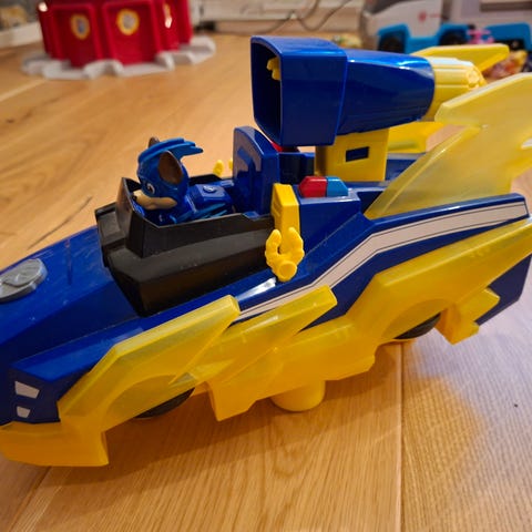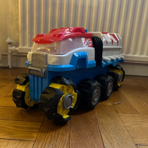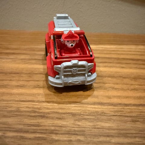 En brandbil med figur i 4 hjul och fjärrkontroll