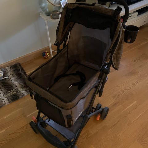 Detta är en rymlig vagn med sidofack som är perfekt när man vill ta ut sina katter på en promenad som inte går ut själv eller om det kanske är kyligt och ska vara ute en längre tid ute med hunden. Vagnen har endast används ca 4 ggr och är därmed i gott skick. Vagnen är grå. Ordinarie pris 1633kr men säljer den för ett bra pris 1200kr. Priset kan diskuteras vid snabb och smidig affär.