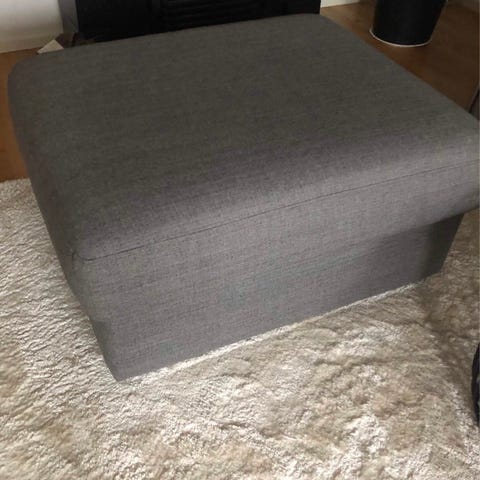 En rosa sittpuff. Ca 52 cm i diameter och 32 cm hög. Den har några fläckar på ovansidan men i övrigt fint skick.