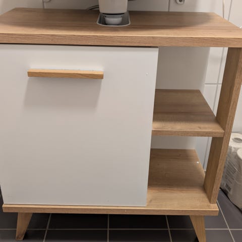 •Skick: Aldrig vatt använt, endast ihopa byggt. Dock som man kan se på bilderna (3-5) häbörja vi såga för att kunna få in en toavask med rör i golvet. Dock inget som förstör själva skåpet i sig. Annars som sagt nyskick/nytt!