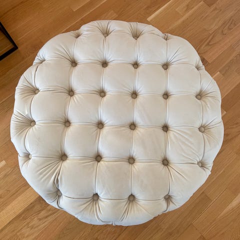 Mio Roberto Pamio fotpallar i grått tyg. Designade av Roberto Pamio, dessa fotpallar är avsedda för användning tillsammans med soffor eller fåtöljer för extra komfort.