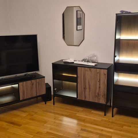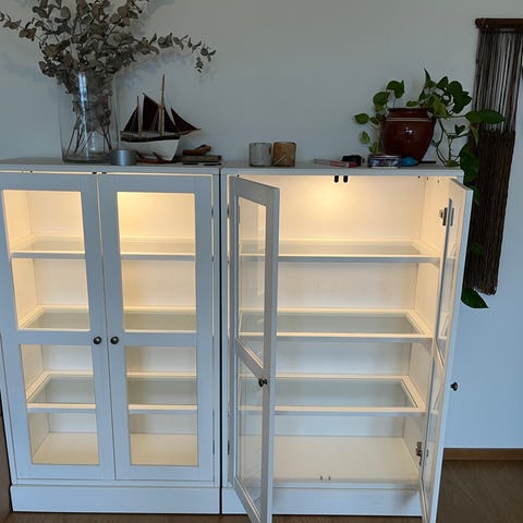 Säljes vitrinskåp i ny skick ej använt mycket har haft de här figurerna bara på, med belysning 150x 90x45. Pris 1000:-