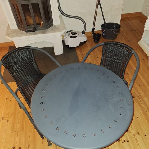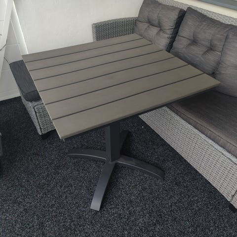 Trägård bord med bordsskiva i trä och benstativ i metall. Bordet är utformat för att enkelt kunna Passar för utomhusbruk som trädgård eller balkong. Mått > ( 70 X 50 X 50.cm ) enligt på bilder finns i Västerås .
