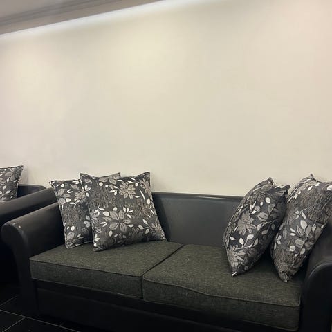 Finns lite skador på armstödet, som det ser ut på bilden, annars är allting bra. Jag har haft dem i 5 år. Det är 3+2+1