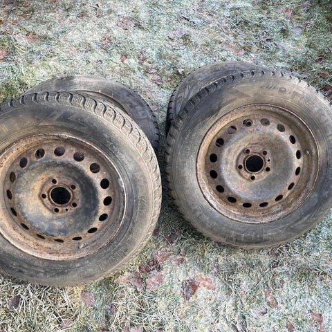 Odubbade vinterdäck med Volvo original fälgar hjulkapslar