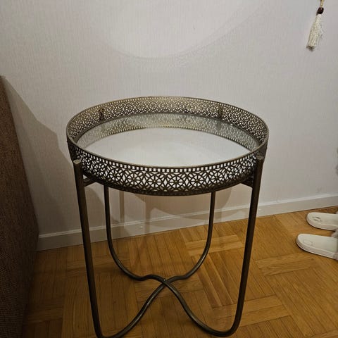 Synligt använd med slitna kanter och lite repor, ses på bilder. Inget man tänker på utan att noga besikta bordet