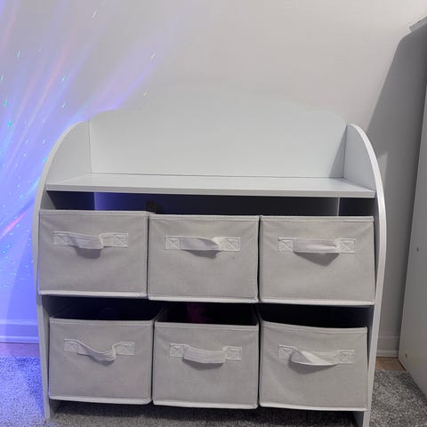 Jollyroom förvaringslådor för barn i trä med handtag. Lådorna har olika färger och är anpassade för barnrum för att organisera leksaker och andra tillhörigheter.