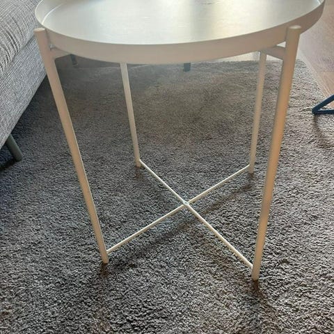 Snyggt brickbord i svart metall. Lätt struktur på bordsytan, se foto. Finns ej längre i Ikeas sortiment.