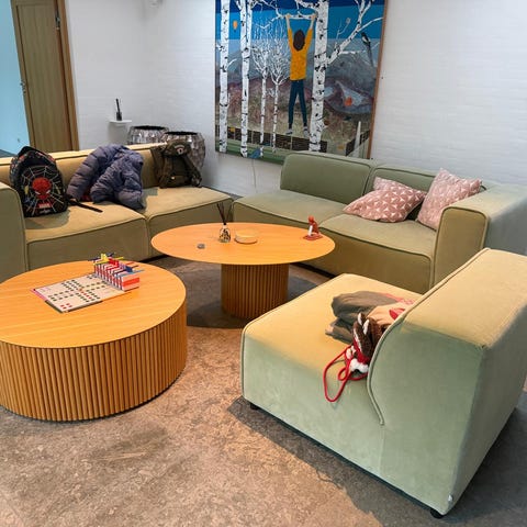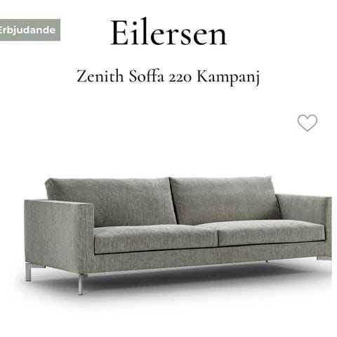 Soffa, inköpt på miljögården, danska märket Ihrenborn: bestående av två moduler, avtagbar klädsel i svart manchester. Mått: Djup: 94 cm, sitthöjd:42 cm, sittdjup:60 cm, Längd per modul: Hörndel: 167 cm, Divandelen: 165 cm. Där finns en liten skada i tyget, baksidan av hörndelen, se bild