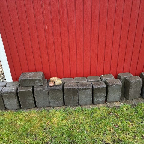 Betongplattor med måtten 50x50 cm i grå färg. Totalt ca 500 stycken plattor. Används för utomhusbeläggning och kan läggas i trädgårdar, gångvägar eller andra ytor som kräver slitstarkt material.
