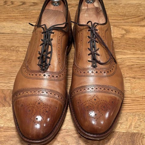 Klassiska amerikanska kvalitetsskor från Allen Edmonds. Svart kalvläder, full brogue, kiltie-flap och tofsar.