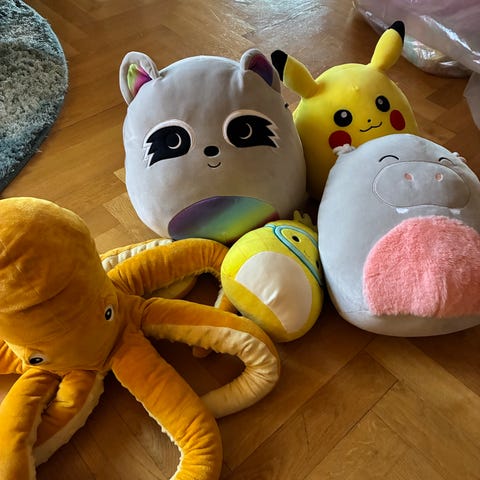 Fina Squishmallows, väldigt bra skick. 100 kr för den mindre, 200 kr för den större eller 250 för båda. Mottagaren betalar frakten.
