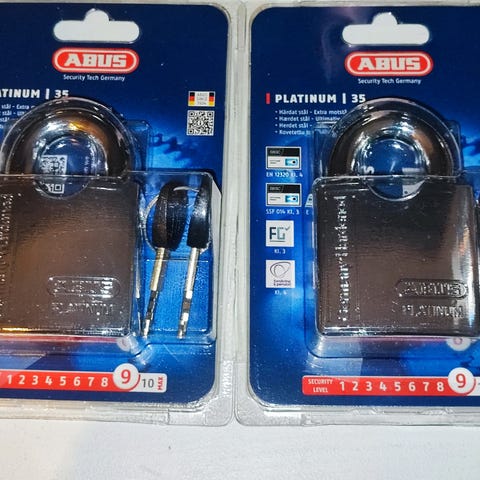 Kirzy hänglåscontainerlås med tillhörande nycklar. Metallmaterial och fyrkantig design. Lämplig för säkerhetsändamål där låsning krävs. 750kr/st eller alla 5 för 2000kr