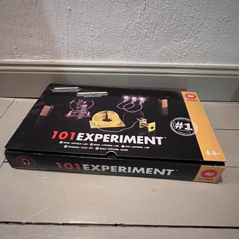 Science Secret Spy Lab experiment kit innehåller material för att utföra olika spionrelaterade experiment. Setet inkluderar verktyg och kemikalier för att upptäcka fingeravtryck, hemliga meddelanden och andra spiontekniker. Passar för utbildning och lek, främst för barn och ungdomar intresserade av vetenskap och spionage.