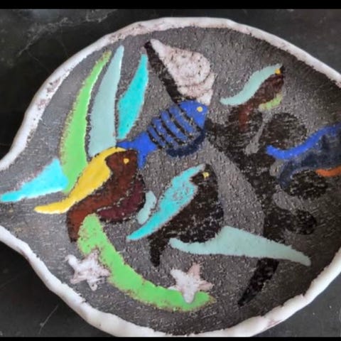 Vinröd/svart diam. ca 270 m.m. form givit av Hjördis Oldfors 1952-59