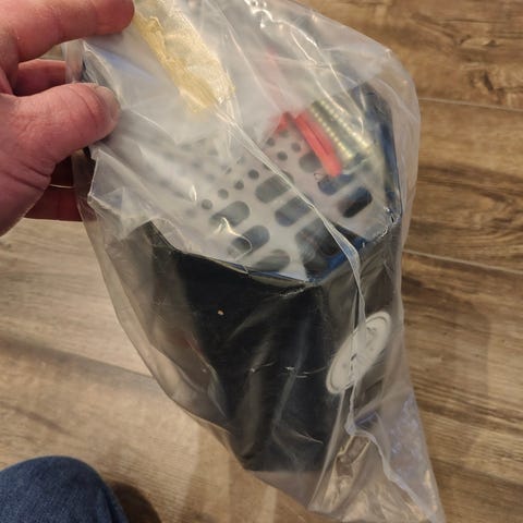 Vattensäck märkt med Dräger 93, Typ 341. Patent pending. Pat Pend Int. uppblåsbar plastdetalj tillverkad i Sverige. Produkten består av transparent plastmaterial och har en ventil för uppblåsning och tömning.