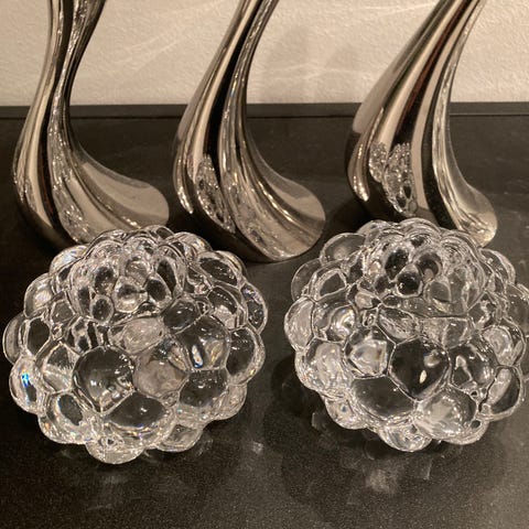 Orrefors Hallon. 2st Ljuslyktor, Ljuslykta & Skål. Fint skick. Anne Nilsson.