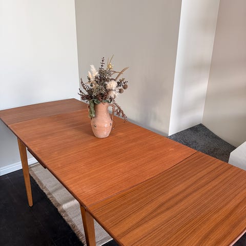 Matbord i teak med 2 st utdragsskivor från Rosendals möbelfabrik AB, modellen heter Rottne.