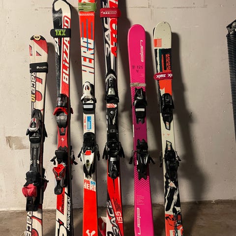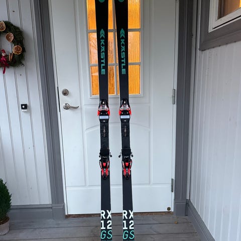 Grymma slalomskidor med max kantgrepp. Perfekta för snabba svängar i pisten. 165 cm. Radie 12,5. Fina belag. Ungefär halva bredden på kanten kvar. Nypris hos Kästle ex bindning 13.500 kr