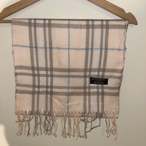 Burberry Ull Halsduk i beige färg, tillverkad av 100% ull. Halsduken har en klassisk rutig design med fransar i ändarna. Materialet är ull, vilket ger värme och komfort. Produkten är avsedd för män. Halsduken är självklart äkta