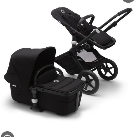 Dags att sälja vår fina vagn då barnen växt ur den, en äldre modell av Bugaboo Donkey. Går finfint och är lätt att växla mellan enkelvagn eller dubbelvagn. I enkelsvagnläget så finns plats för en sidokorg.
