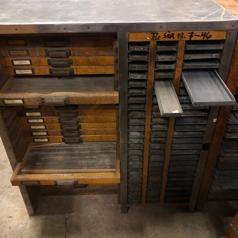 Arkivhurts från gammalt tryckeri. Perfekt som plansch förvaring eller till barnens teckningar