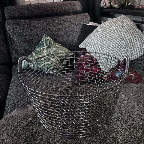 Handgjord träpicknickkorg med handtag
