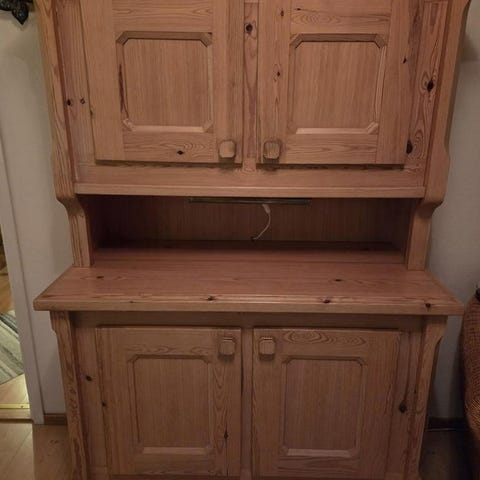 Skåp, från Linneladan i Penningby. Höjd 193 cm, bredd högst upp 62cm( kronan), djup 31 cm.