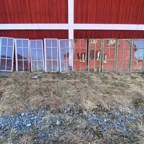 4 st Fönsterbågar 2+1 glas. För karm 120/160. Inga rötskador. Mycket Lite färgsläpp.
