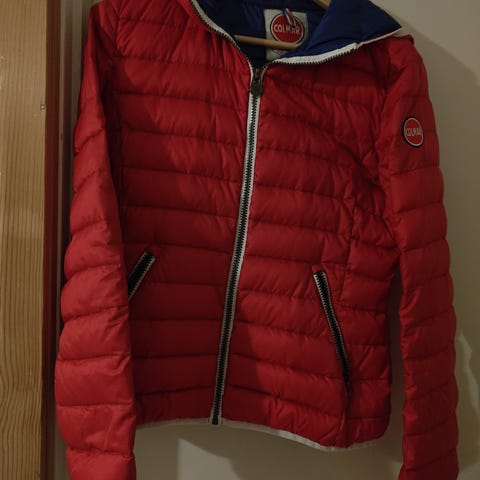Snygg mörkblå pufferjacka från Colmar med röd insida och klassisk logga på ärmen. Jackan har quiltad design, dragkedja framtill och två fickor med dragkedja. Den är deras tunna modell!