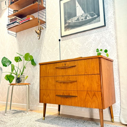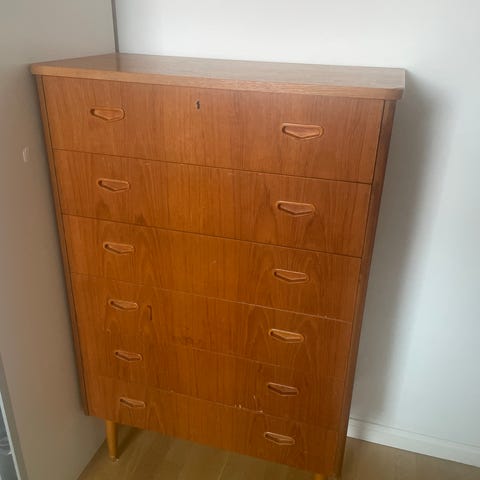 Vacker teak byrå med 6st lådor med lås(tyvärr saknas nyckel).