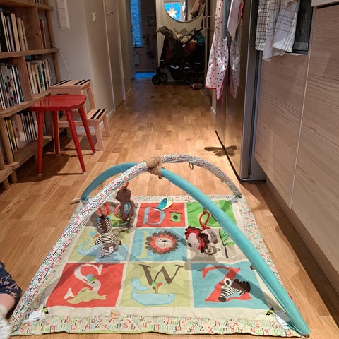 Fint babygym i trä. Höj och sänkbar till sex olika nivåer. Har använts av vår bebis från nyfödd till 6 månader.