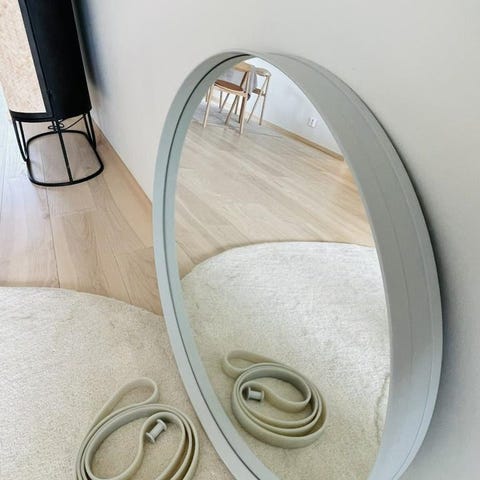 Hay Strap Spegel är en dekorationsspegel med rund form och hängrem