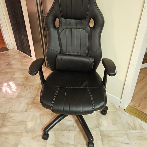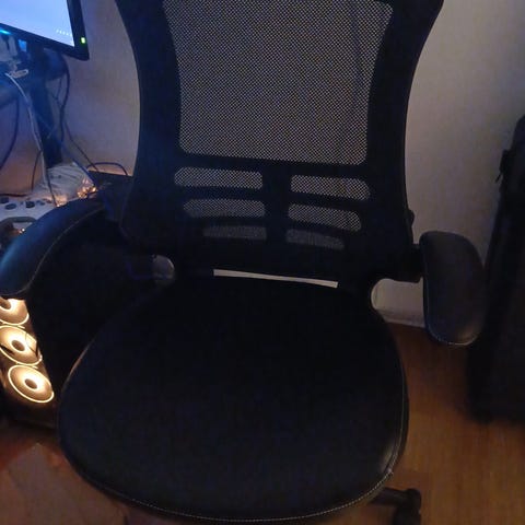 Höj- och sänkbar skrivbordsstol med dyna, den har även gungmekanism.